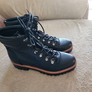 Indigo Black Lace-Up Ankle Boots.New Condition