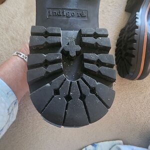 D-ring hardware adds rugged hiker style to the chunky lug platform and bold attitude of the Isha combat boots from indigo rd.