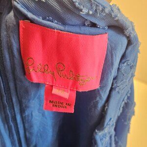 Beautiful Lilly Pulitzer women’s dress in size 12 — a breezy, effortless piece in a soft sky-blue hue with a subtle textured pattern. Features flutter sleeves with playful pom-pom trim, a relaxed tiered silhouette, and lightweight airy fabric perfect for warm-weather days. A signature Lilly look that blends classic resort style with boho charm.