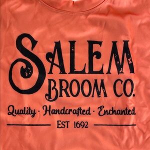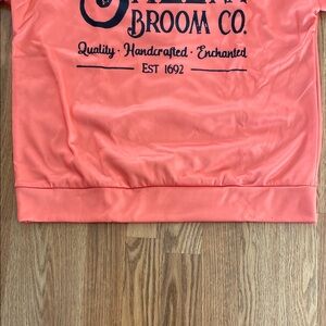 Orange sweatshirt with Salem Broom Co. print. Comfortable and stylish. Fits like a size large. Nylon outer material and soft inner lining.