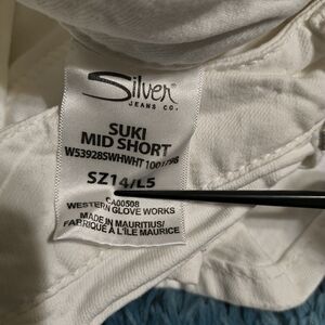 Stylish white jean shorts by Silver Jeans. Perfect for everyday wear. Modern and versatile.