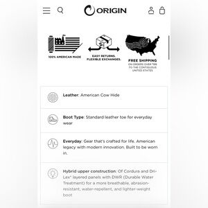 Hybrid upper construction of Cordura® and Dri-Lex® layered panels with DWR (Durable Water Treatment) for a more breathable, abrasion-resistant, water-repellent, and lighter-weight boot