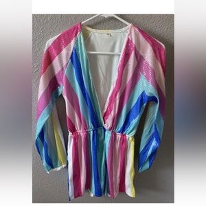 Lantern Sleeve Multicolor Striped Sequin Romper Taylor Swift Eras Tour Lover