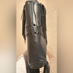 Note: some fringe strands are missing on one side back and front. Not noticeable when using bag
