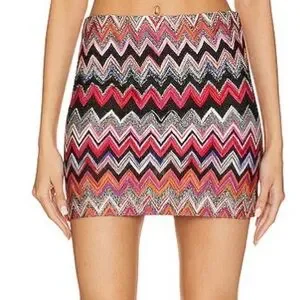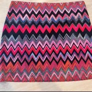 Vibrant women's skirt featuring a bold zigzag pattern. Perfect for adding a pop of color to your wardrobe.