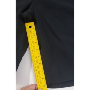 These Eddie Bauer shorts are perfect for any occasion, whether it's for travel, casual wear, or work. The shorts are made of a comfortable and stretchy microfiber fabric with a dark wash, featuring a flat front and slash pockets. The logo accents add a touch of style to the solid black color, and the zip closure ensures a secure fit. These shorts are easy to care for and machine washable, making them a convenient addition to any wardrobe. The size is 42 with a mid-rise and 9-inch inseam, suitable for any summer or spring adventure. Whether you're camping, hiking, or simply enjoying a day out, these shorts are a great choice. These do have a soft fleece lining