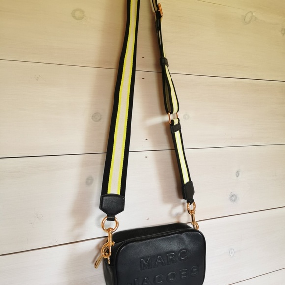 Fabulous Marc Jacobs Flash Camera bag Black leather Like new $350 USD retail Bag Width 8.75" Pattern Solid Shape Rectangle Closure Zip Bag Height 6 in Crossbody Strap Lining Material Fabric Hardware Color Gold Bag Depth 3 in Exterior Material Leather Accents Strap Accent Strap Drop 23.25"