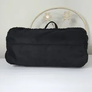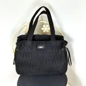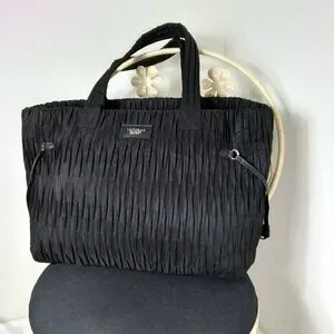 Victoria's Secret Elegant Black Satin Pleated Zip & Cinched Overnight Tote NWOT