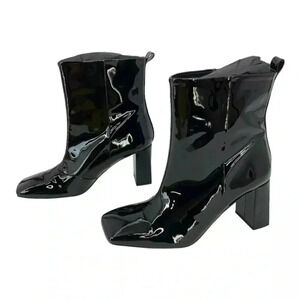 Good American Black Patent Leather Square Toe Boots Size 8 NWT $249 MSRP