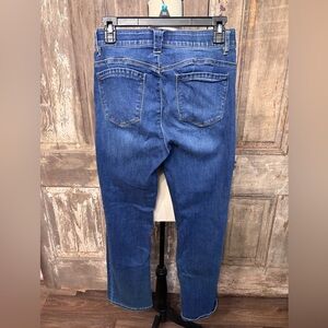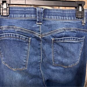 Elevate your wardrobe with these classic blue women's jeans. Perfect for any occasion, these jeans offer both style and comfort. Tag ripped out because it was irritating. Size 28 waist very soft material jeans 30” inseam. straight leg bootcut. Fits 27-28 waist. Elastic band in the back