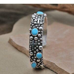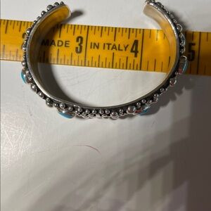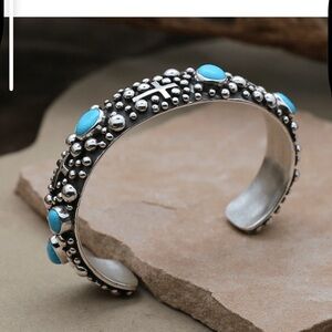 Beautiful and unique sterling and turquoise bracelet from Spirit of Santa Fe. Rain drop design. 1/2 inch wide. Never worn. Love the bracelet but I have too much Southwest jewelry.