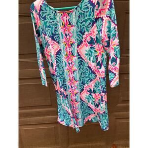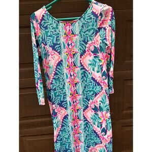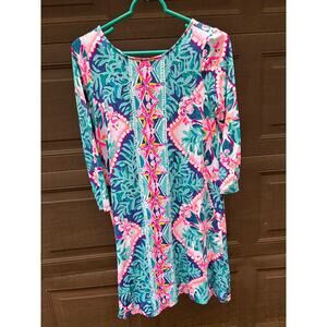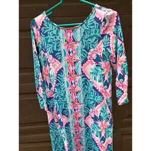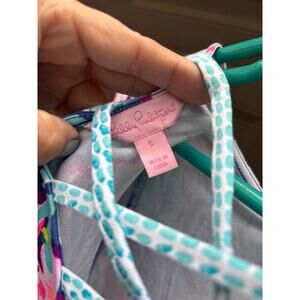 Lilly Pulitzer Ophelia Swing Dress Small S Seaside Aqua with a crossed back worn maybe once or twice. I feel like it’s an oversized small and would fit medium as well just a little tighter