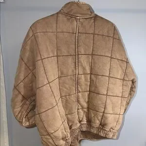 No tags but like brand new! Slouchy, oversized, extra roomy, soft, quilted knit with a zip-front closure, funnel neckline, cinched back hem! Women’s size small!