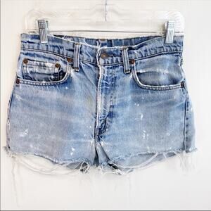 Vintage Levi's Paper Tag Custom Painted Raw Hem Distressed Shorts Size Small