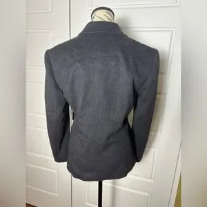 Henri Bendel blazer, wool cashmere blend, women's tailored blazer, charcoal gray blazer, luxury wool blazer, professional wear, designer wool blazer, classic women's blazer, structured blazer, elegant cashmere blazer, winter wool blazer, button-up blazer, notched lapel blazer, sophisticated women's outerwear, office fashion