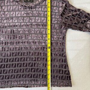 Fendi Jeans Vintage Zucca Velvet Sheer Long Sleeve Shirt Top Size S ? Purple