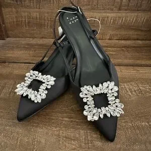 NEW! Bejeweled sling-back kitten heel with memory foam cushion.