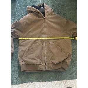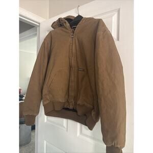Wolverine Jacket Mens Large Brown Hooded Full Zip Quilted Lined Work Canvas