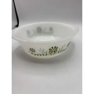 Vintage Glasbake Green Daisy Mixing Bowl 1 Quart J-514 USA Milk Glass