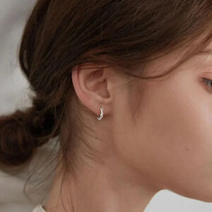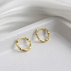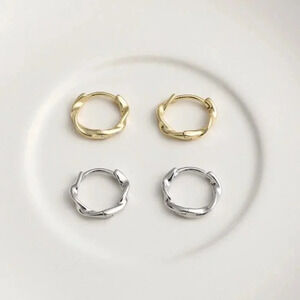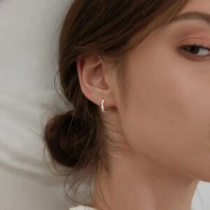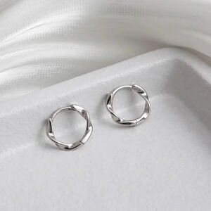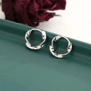 925 Sterling Silver Twist Huggie Hoop Earrings Minimalist Small Hoops