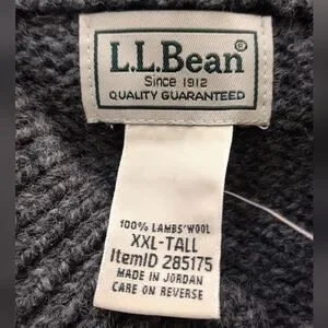 NWT L.L. Bean men's gray knit charcoal pullover long sleeve sweater Sz XXL Tall.