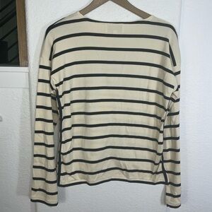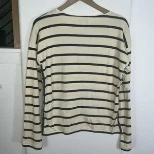 Elegant navy and white stripes. Comfortable long sleeves. Perfect for casual wear.