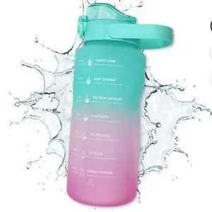 Water Bottle Jug 64oz Built-in Straw Time Marker Gradient Blue Pink Sport Gym