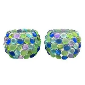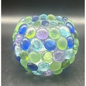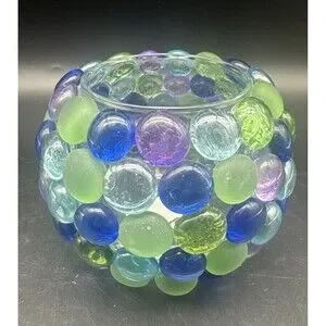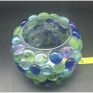 VTG Libbey PURPLE BLUE GREEN Decorative Stones On Glass Candle Votive Holders-2
