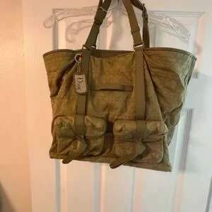 Elegant Dior tote with quilted design. Features dual front pockets and sturdy straps.