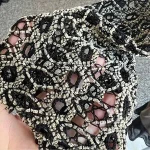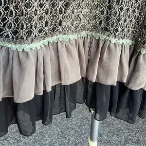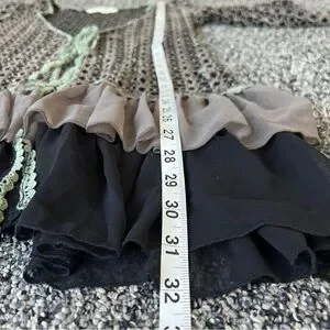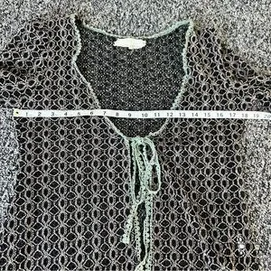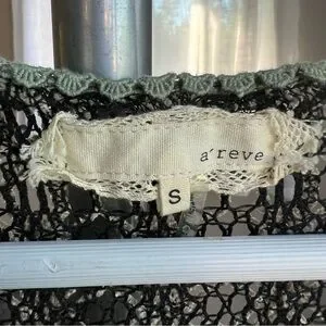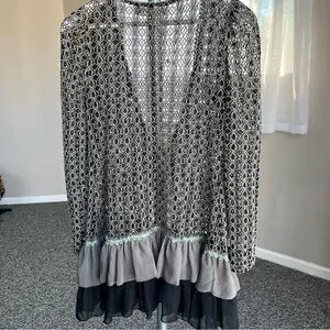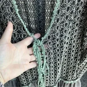 A'Reve Lace Knit Cardigan with Ruffle Hem in Black and Gray and Sage