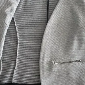 Upgrade your wardrobe with this chic gray unlined blazer, purchased in London, UK. Perfect for both professional and casual settings, it offers a sleek and modern look.
