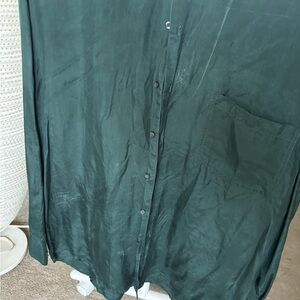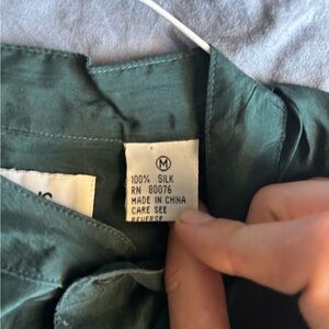 Stock Options 100% Silk Green Longsleeve Size Medium NWOT Comfy Button Up Blouse