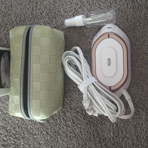 white and rose gold new in box. comes with travel spray bottle.