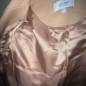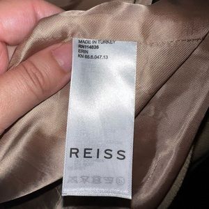 Elegant tan coat by Reiss. Features a tailored fit. Perfect for layering.