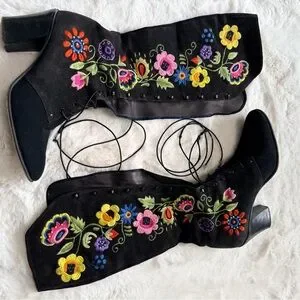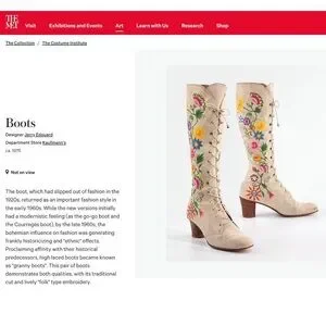 •These boots are highly sought-after vintage items. They are sometimes referred to as "Penny Lane" boots, made popular from the movie Almost Famous. There is a cream pair currently on display at The MET shown in last pic. ✨