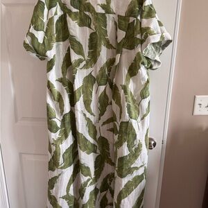 Chic maxi dress / kaftkan with green leaf pattern. Lightweight and breezy. Ideal for casual outings.