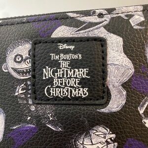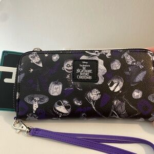 Stylish wallet featuring Nightmare Before Christmas design. Black and purple colors.
