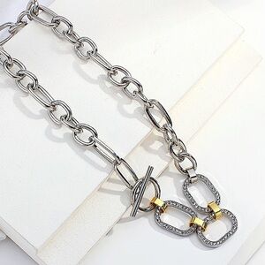 Silver crystal chain link punk Statement necklace measures 20” can be customized smaller. Also available in gold in different listing.