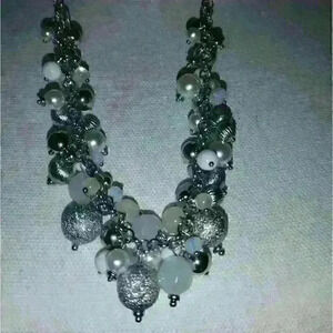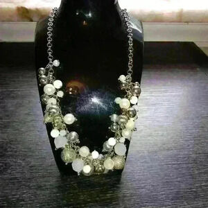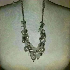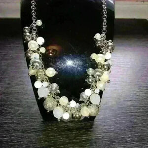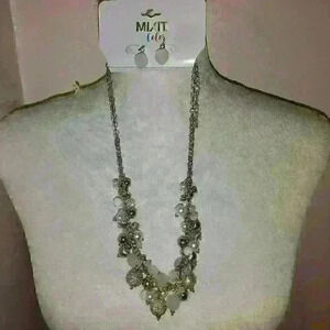 Beautiful mix-it necklace and earring set new with tags. Pair of earrings and necklace set beaded necklace white silver clear. New with tags.silver white clear silver hardware.pierced ears