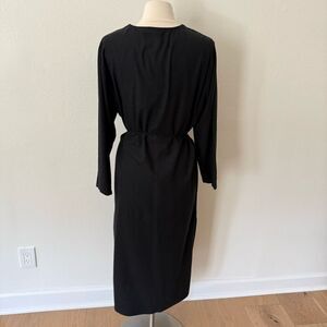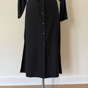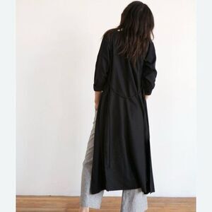 Ozma Mal Pais Duster Dress Size Large Black Raw Silk Cupro Button Front Belted