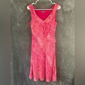 Vibrant pink midi dress with animal print. Sleeveless and stylish. Ideal for any occasion.
