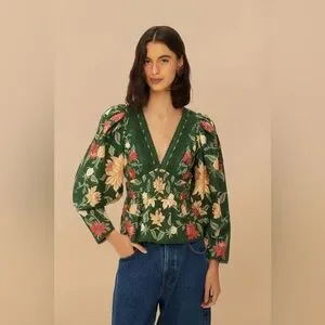 Elegant floral top in a rich green hue. Perfect for any occasion.