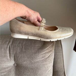 Chic metallic Mary Jane flats with a comfortable fit. Perfect for everyday wear. New never worn. Residue of price stag is seen on one insole- small white spot I will peel that off.