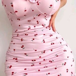 Cherry Print Pink Lingerie Woman's Size Large