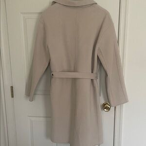 Elegant beige coat with a belted waist. Classic design. Perfect for layering.