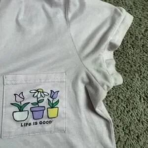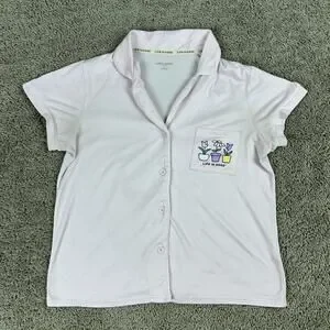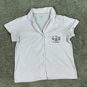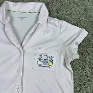 Life Is Good Top Womens S Pink Sleep Shirt Flower Pots Button Front Pajamas READ