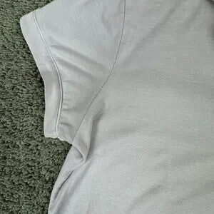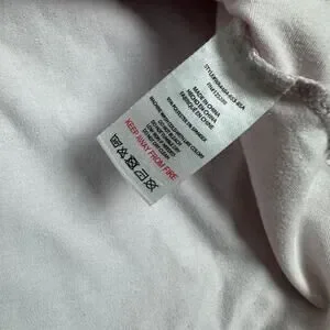 In fair pre owned condition. Has some discoloring under your arms and some spilling on the front and back.