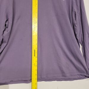 Stylish long sleeve tee. Features The North Face logo on chest and sleeve. Comfortable fit. Slight imperfections on front and logo sleeve and wearing of seams on front collar as shown in last photos