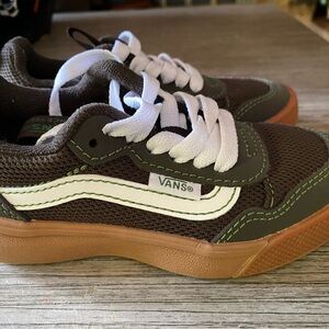 Vans sneakers for kids. Dark army green upper mesh material with white. Tried on, never worn.