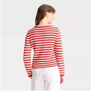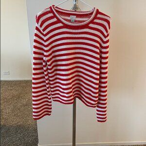 NWT SHRUNKEN CREWNECK PULLOVER SWEATER--RED/WHITE STRIPED--MEDIUM--A NEW DAY